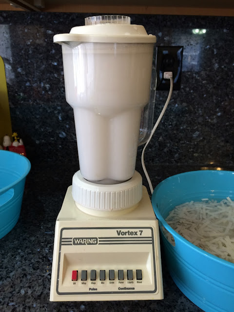 Now that it's blended dump it into a container that the hoop will fit into. Make several batches and then start making paper.